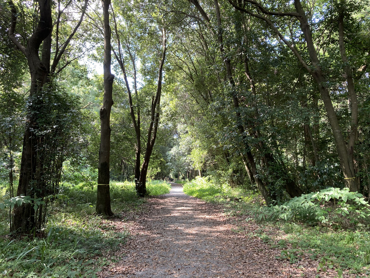 神武天皇御陵から、神武天皇を祀る橿原神宮へと向かいます。途中は美しい林の中を抜けてゆきます。