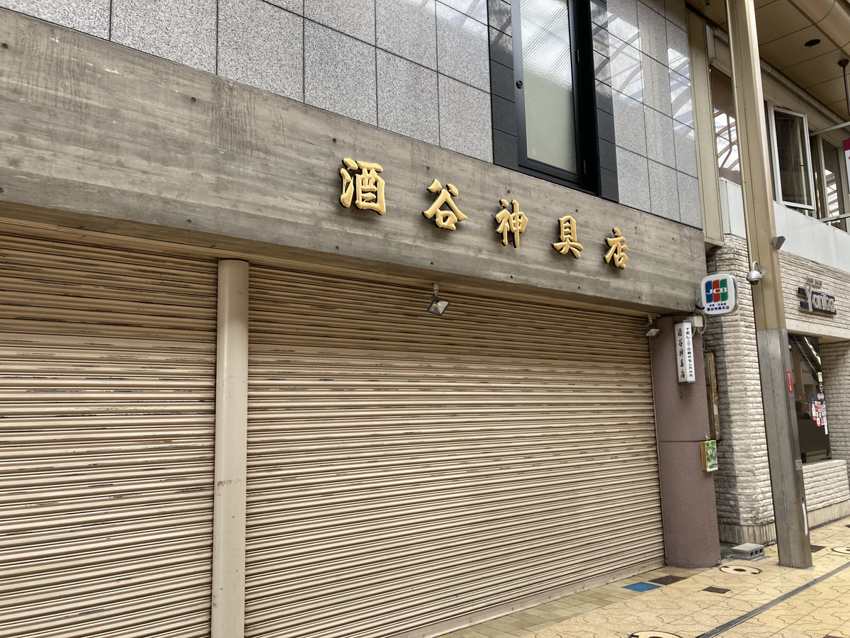 開店途中?の店発見。神棚に備える道具などを売っているようです。
