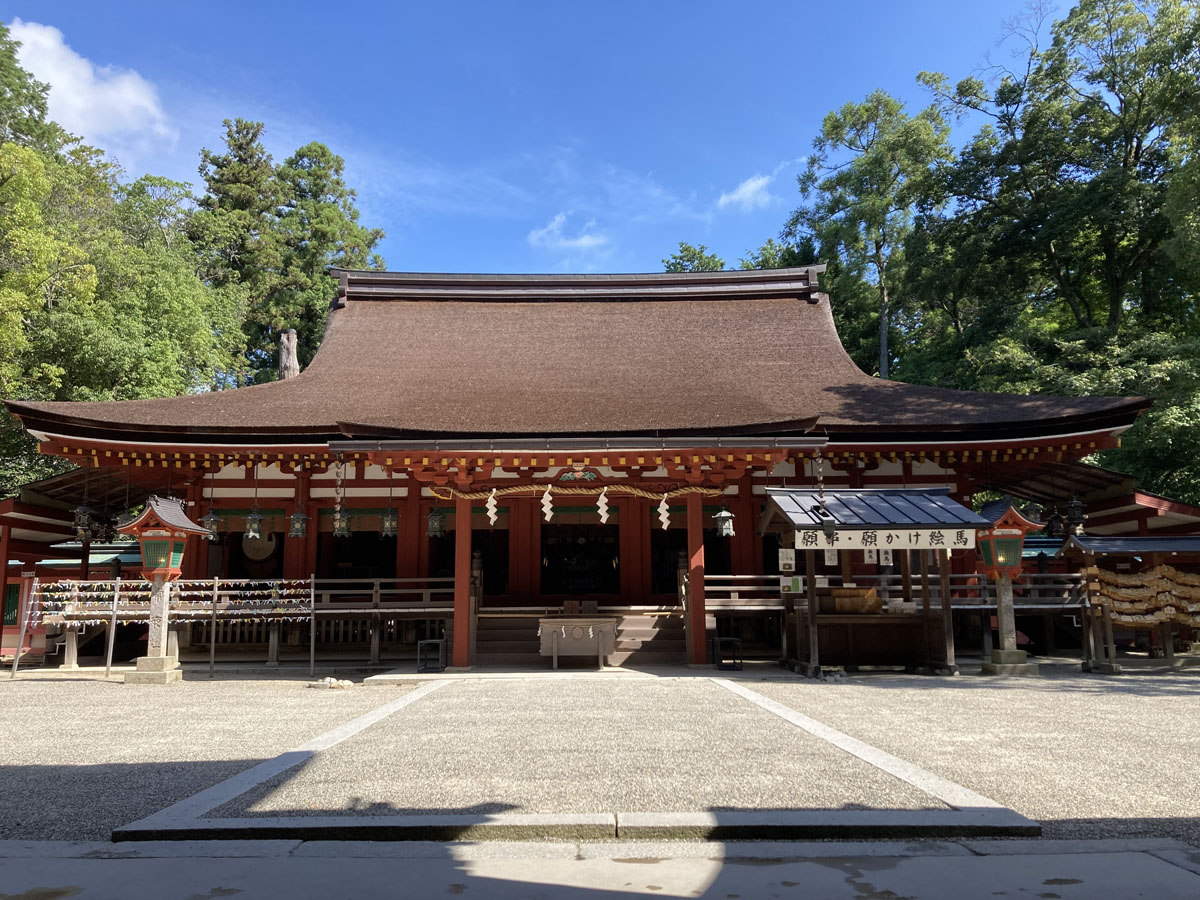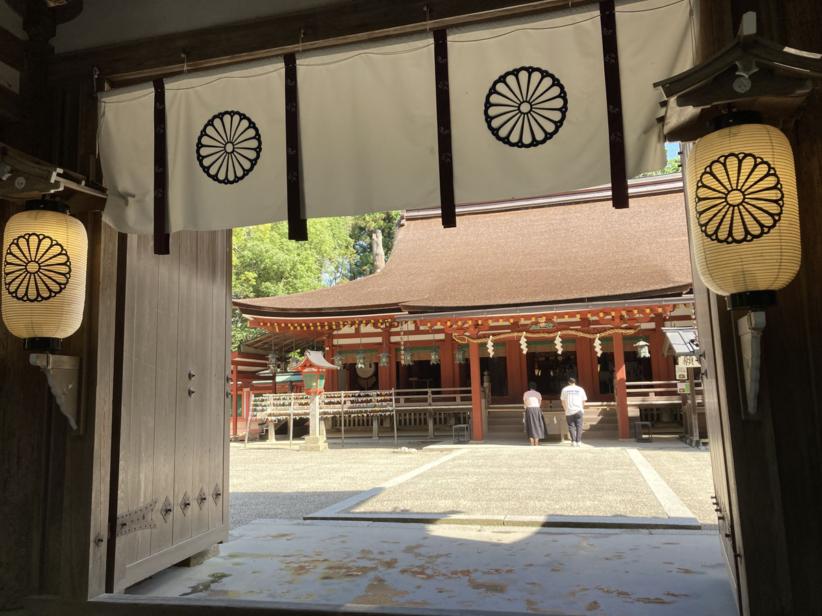 国宝の拝殿。第72代白河天皇が御所の神嘉殿の建物を寄進したもの。